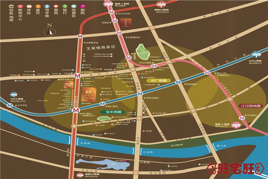 商场或超市:葛洲坝南大天地风情街、宜家荟聚、汉口里、凯德广场、越秀维港购物中心、泛海城市广场、武汉广场